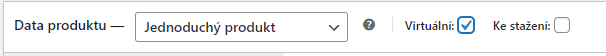 Zvolíme sekci Produkty > Vytvořit produkt, kde zaškrtneme pole „Virtuální“(tím se nám u produktu automaticky odstraní pole s nastavením dopravy).
