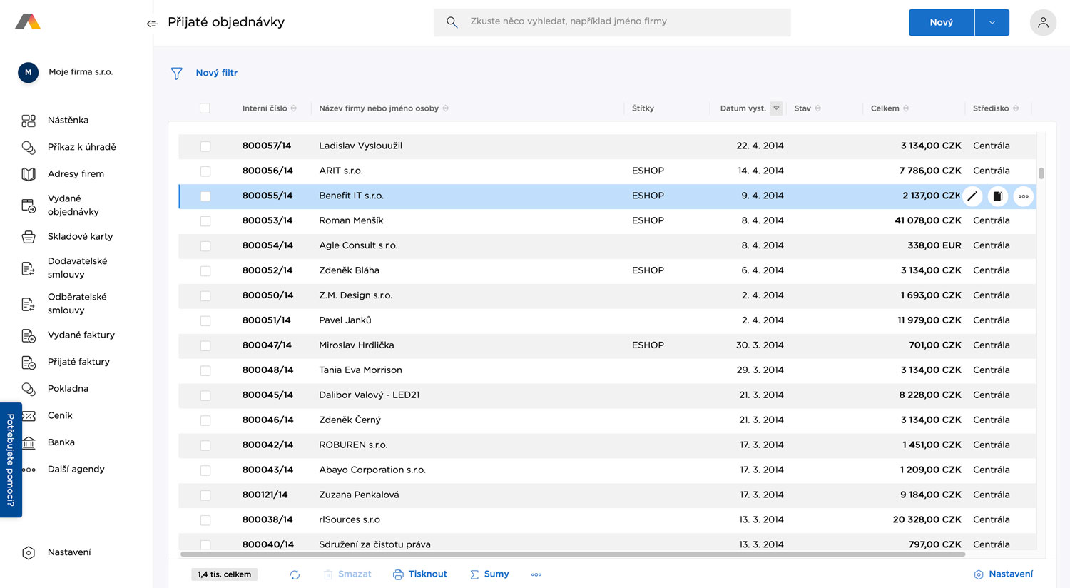 Aktualizace objednávek